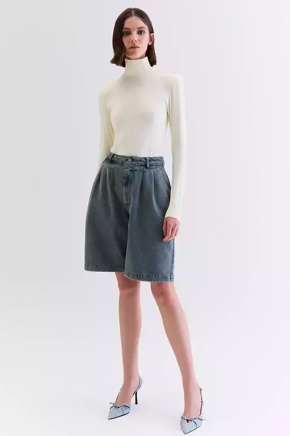 Atualize seu guarda-roupa com a Bermuda Jeans Azul Esverdeada - Hood Mood e sinta-se confiante e estilosa em cada passo!