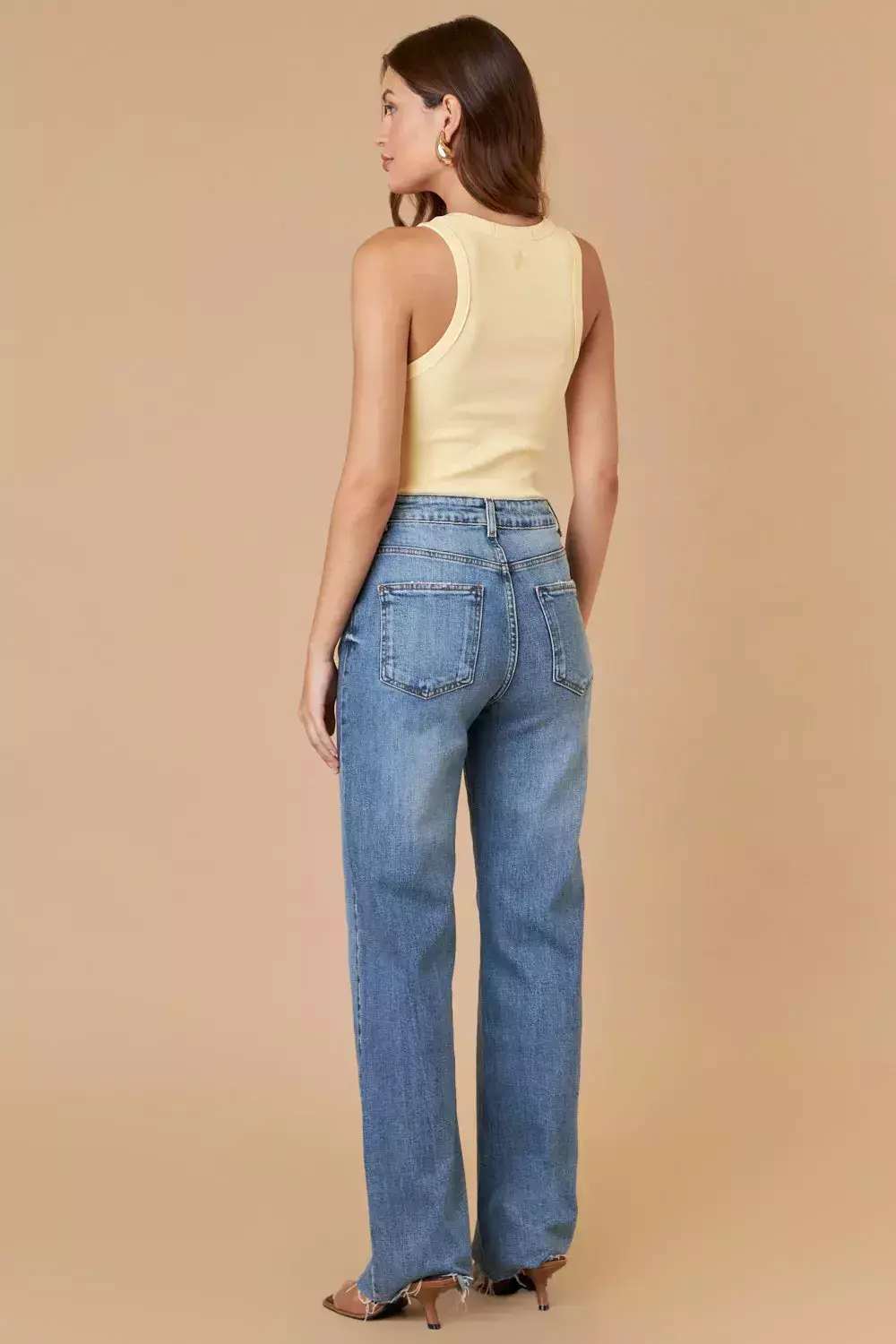 Destaques: - Modelagem reta que valoriza o corpo - Cintura alta para mais elegância - Conforto do elastano na composição - Lavagem média com leve estonado para um visual moderno